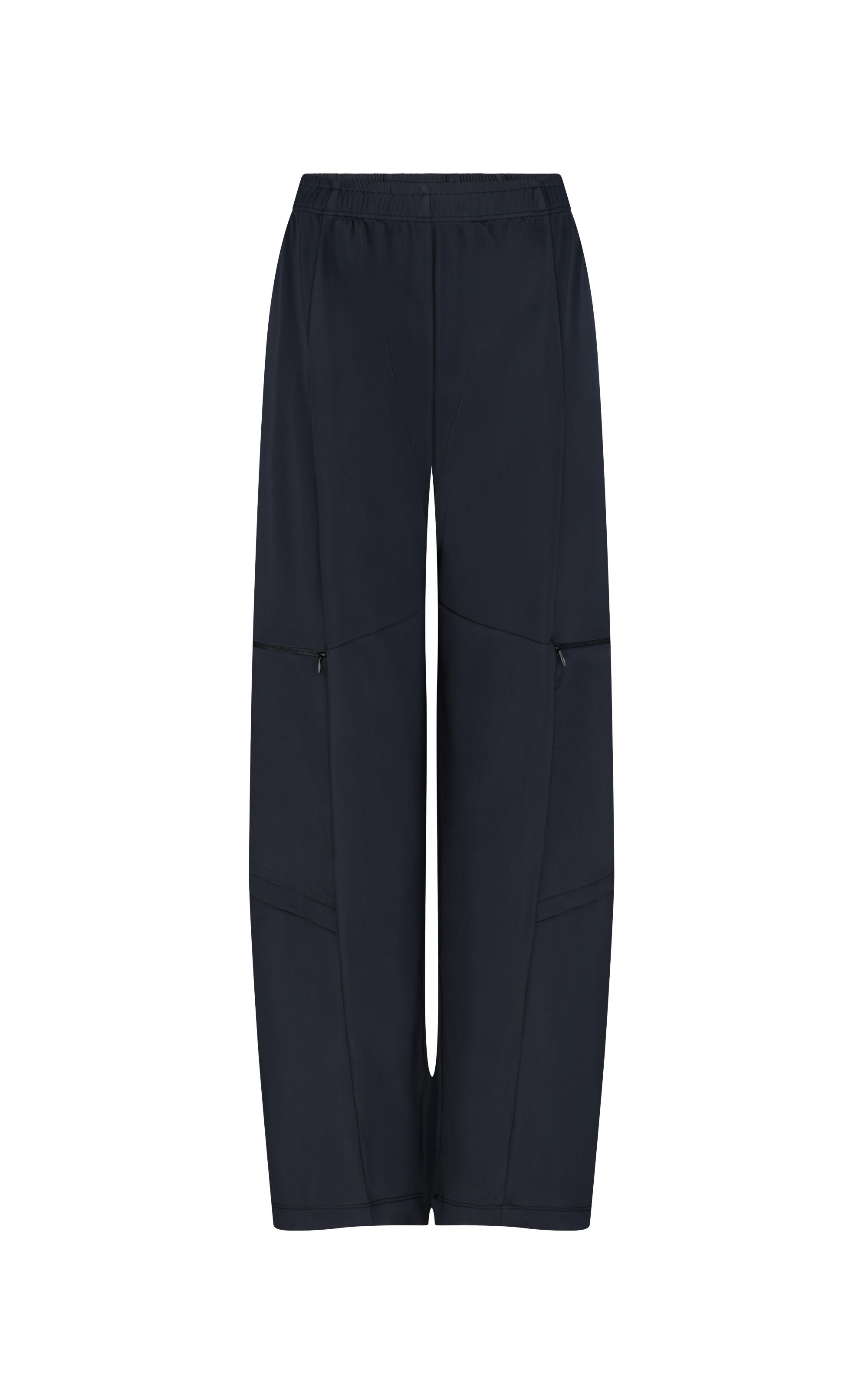TWIST ON THE CLASSIC - CARGO PANT IN BLACK LYCRA WITH ZIPPED POCKETS AND PANEL DETAILING. ELASTICATED WAIST, SHAPED STRAIGHT LEG.